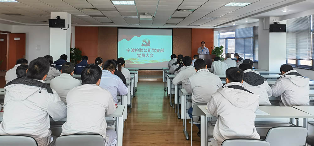 胥峰同志作總結講話,他對大會接收胡經國、游云鵬兩名同志為中共黨員表示祝賀,同時希望兩名同志積極發揮先鋒模范作用,以更飽滿的熱情干事創業,為推動寧波檢驗中心高質量發展添磚加瓦!